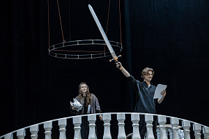 “В замысле спектакля мне наиболее был интересен сам Пушкин, потому что из всех ‘Повестей Белкина’ Пушкин в ‘Метели’ более всего ощутим по языку, по личностному отношению к героям. Далее, читая его письма, погружаясь в его мир, пропуская его через себя, я ощутил помимо образа метели, огромный, космический масштаб личности Пушкина. Отсюда родился центральный многоплановый визуальный образ. Мы взяли за основу кольца Сатурна, как бы встроенные друг в друга, создающие и образ самой метели и, в то же время, фантасмагорию, творимую фантазией поэта. Тем самым мы даем импульс воображению зрителя. От классики мы не убегаем, но представляем на нее наш сегодняшний взгляд. Это и Пушкин, и наша игра в него. По замыслу мы этот спектакль будем делать методом саунд-драмы, когда в живом исполнении идет весь саунд- дизайн, все музыкальные номера, исполняемые артистами”, — рассказал Дмитрий Турков.