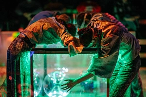 5 ноября играют “Поцелуй Ируканджи”. Его главная героиня — 12-летняя Сузи Свансон из романа “Доклад о медузах” Али Бенджамин. В жизни у девочки всё сложно: родители развелись, сверстники её не понимают, а лучшая подруга Френни утонула... Петербургский режиссёр Юлия Каландаришвили исследует такой феномен, как проживание и переживание горя. Художник Евгения Платонова превратила зрительный зал в пустую черную чашу бассейна. Опустошенная Сузи — девочка в розовом худи — оказалась на дне этого бассейна. Там же с ней — и Френни... 12+.