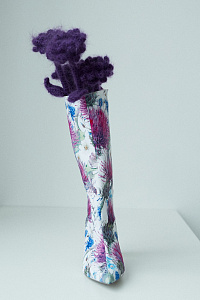 В летних гобеленовых сапогах с чертополохом можно бродить ночь напролет и по цветущим лугам, и по улицам мегаполиса. Лодочки светло-лимонного оттенка, полностью покрытые объемными цветами из фатина и украшенные флоральными элементами ручной вязки — трогательный оммаж одуванчикам, бархатцам, лютикам, ромашками и другим любимым с детства цветам.