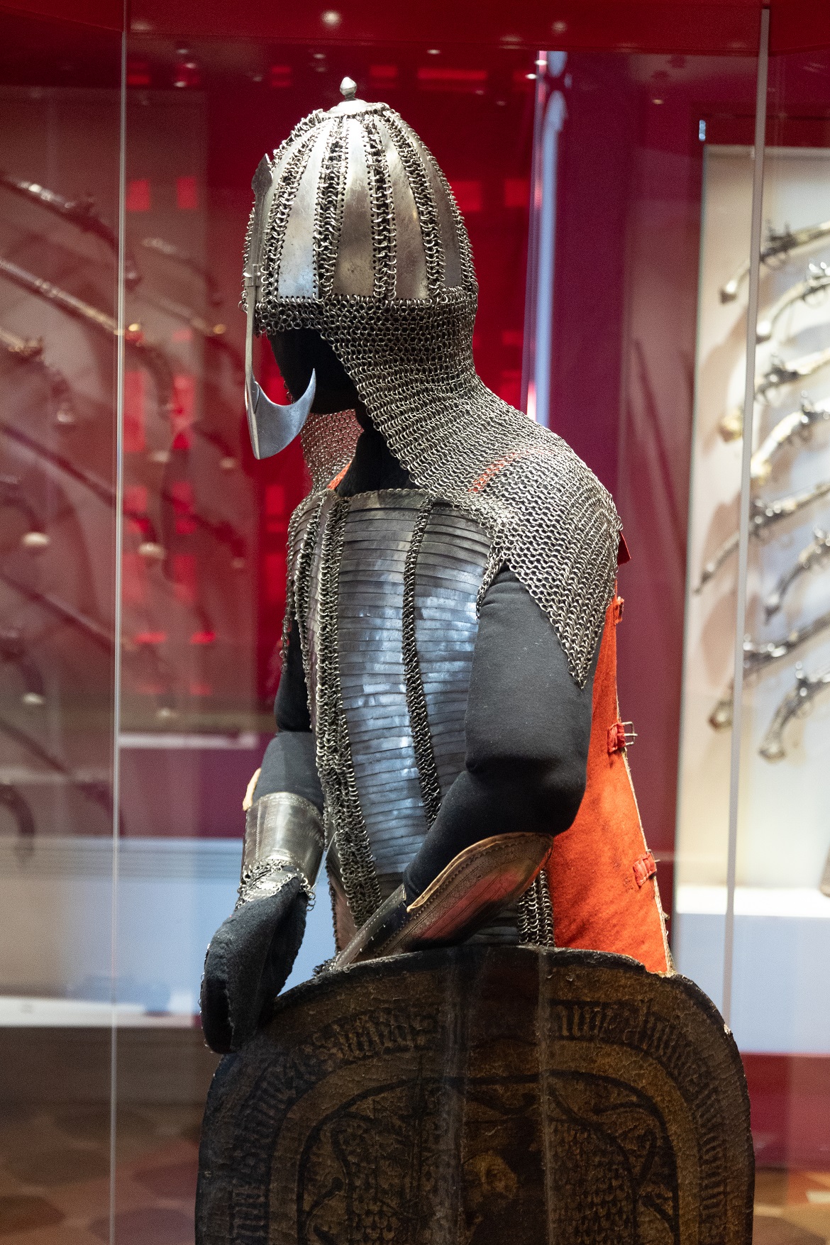 Доспех выставлен в павильоне “Арсенал” до 30 сентября 2022 года. Компанию доспеху составляет богемский щит-павеза XV века.