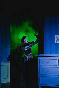 Камерный мюзикл органично вписался в интерьер старинного особняка конца XIX века. Зал с сохранившимся плафоном и лепниной дополняет декорации, воссоздавая атмосферу домашнего театра аристократических особняков прошлого.