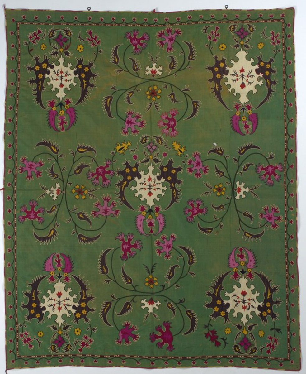 Российский этнографический музей открыл выставку, посвященную декоративным вышитым изделиям и тканям Узбекистана. Использование в них шёлка как основного материала, придаёт особую изысканность и вышитым узорам, и качеству тканей.