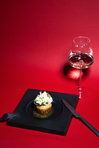 В меню праздничного дня — пончик с крабом и щучьей икрой (к нему рекомендуют замысловатый крымский Пино Гри), пате в сфере из какао-масла с гелем из красных яблок (предлагаемая пара — розовое тосканское), ромовая баба с муссом из ряженки, маракуйей и фундуком (артизанальное игристое из Марке). При этом, если есть желание, без винного сопровождения можно и обойтись. Тем более, что бармены заведения готовы по случаю смешать вам особые коктейли — Candace Bushnell или Showgirls.