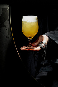 Hoppy играет на контрасте формы и содержания: микс из виски, ванильного ликера, сока юдзу и манго венчает шапка взбитых сливок.
