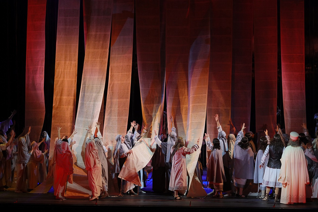 На новой сцене Мариинского театра покажут постановку, рассказывающую о бедствиях евреев, об их пленении вавилонянами, а затем отпущении на родину царём Вавилона Навуходоносором. В этом сочинении нет этнографического колорита, опера достигает археологической точности в масштабе передачи страстей.
