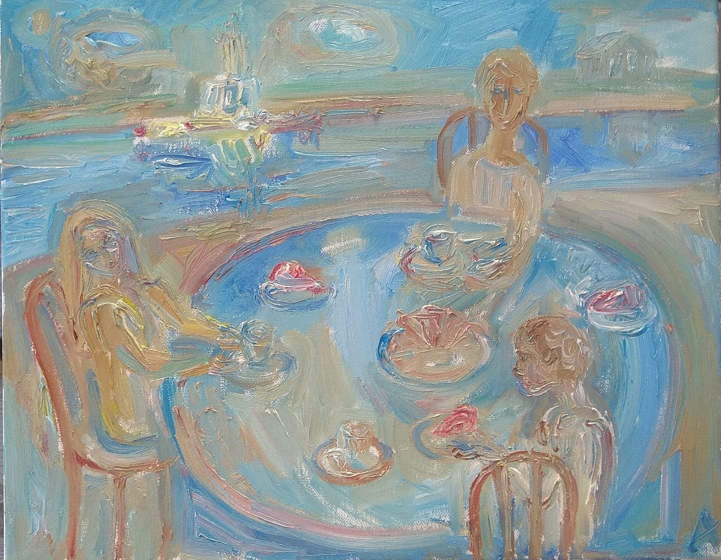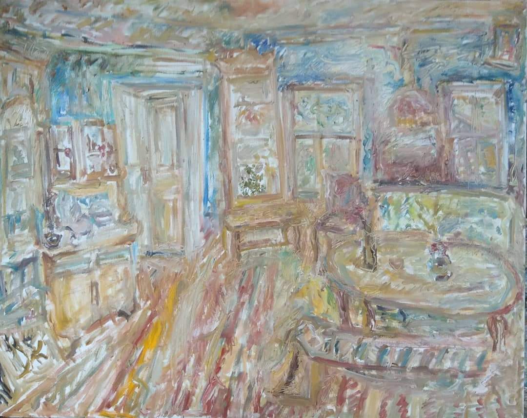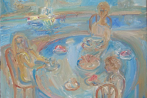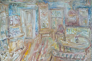 Переделкино — городок писателей, где когда-то произошла встреча Мессереров, и где сейчас расположилась их домашняя галерея “Сад”, в которой они устраивают выставки для художников “Ферапонтовского круга”. На второй локации находится монастырь, фрески Дионисия — это место, о котором весь год можно мечтать, и где у них есть свой “Серебряный дом”. “Дачная” жизнь вдохновляет художников на новые творческие победы, являясь своеобразной музой их работ, которая находит свое отражение в полотнах.